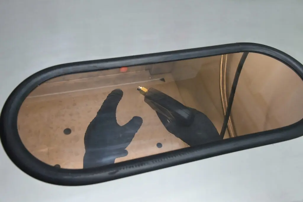 Po zdemontowaniu kosza , możemy teraz podpiąć do kabimy wąż z pistoletem dla myjki ciśnieniowej. Tutaj powierznia robocza znacząco wzrasta.