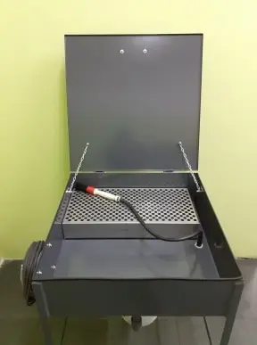 Myjki warsztatowe to urządzenia, które pracują w obiegu zamkniętym. Proces mycia przebiega poprzez pobieranie wody z płynem ze znajdującej się pod myjką beczki. Pompa pobiera wodę z beczki poprzez wąż zakończony pędzlem który pomaga w domyciu cięższych zabrudzeń. Nasz płyn który dostają państwo w zestawie posiada właściwości odtłuszczające i penetrujące, które spokojnie radzą sobie z ciężkimi zabrudzeniami. Po umyciu brudna woda spływa z powrotem do beczki gdzie brud i osad gromadzi się na jej dnie.