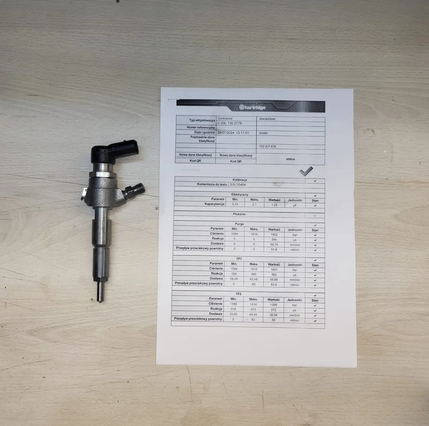 - Protokół w postaci wydruku z maszyny precyzyjnej
